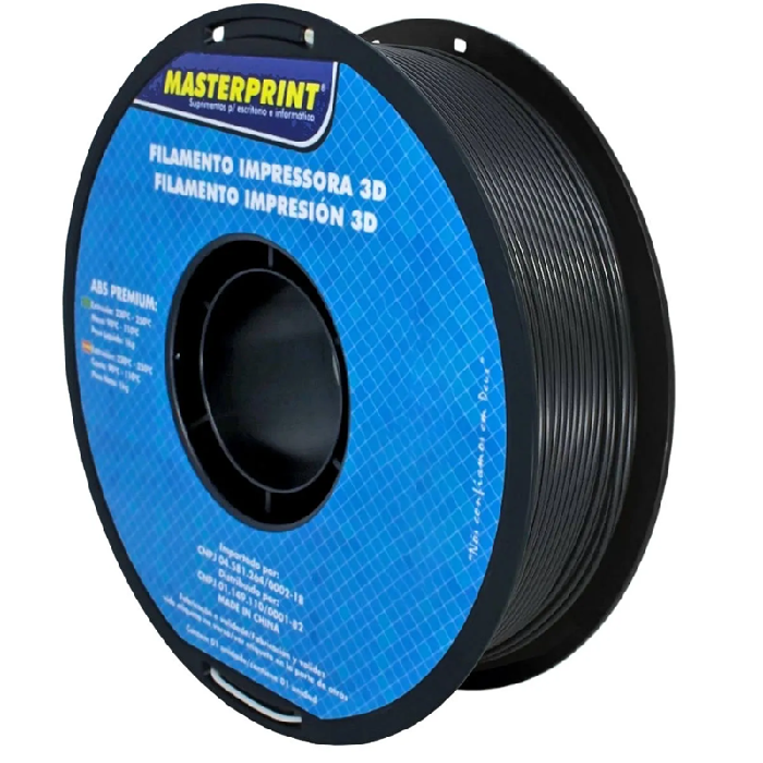 01 - Filamento ABS Premium Masterprint 1Kg 1.75mm Preto