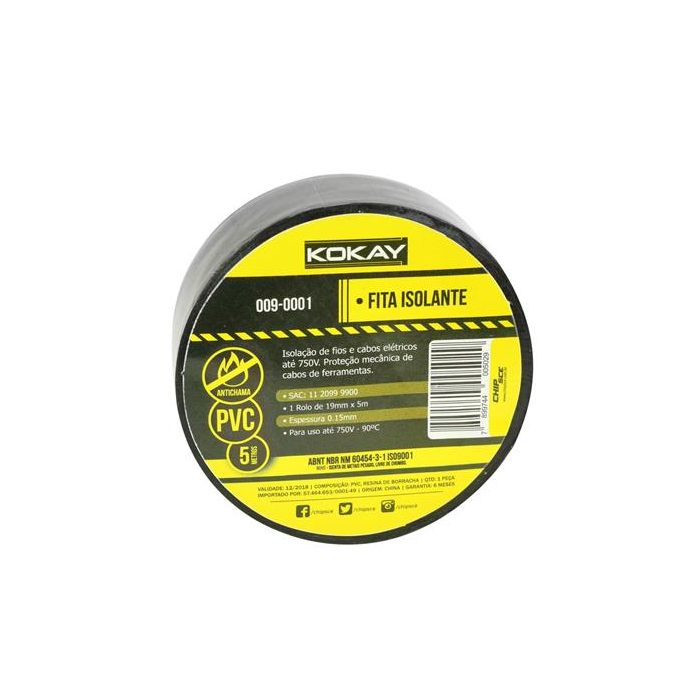 Fita Isolante Anti-Chama 19mm x 5m – Especificações: