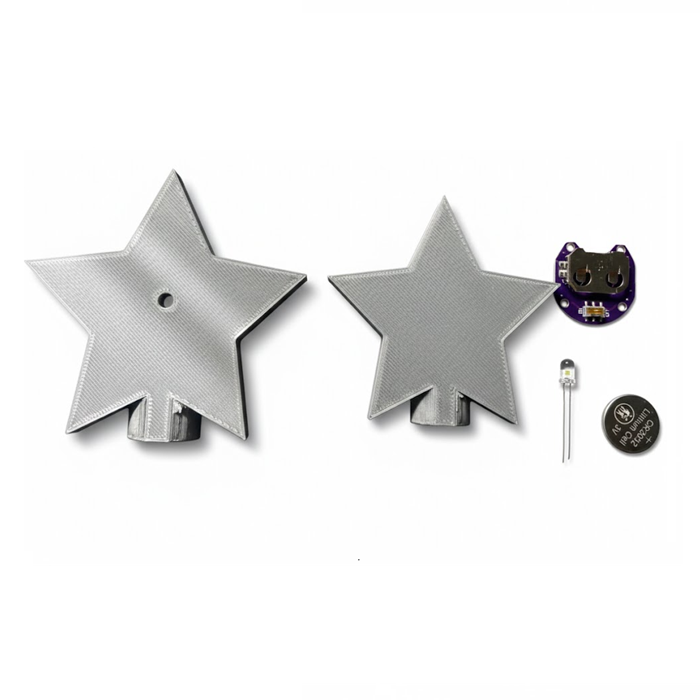O Kit Enfeite de Natal DIY - Estrela traz uma encantadora estrela de Natal impressa em 3D, acompanhada de um LED RGB automático que alterna as cores suavemente, criando um efeito visual mágico. Ideal para decorar árvores de Natal, mesas, ambientes internos e até presentear alguém especial.