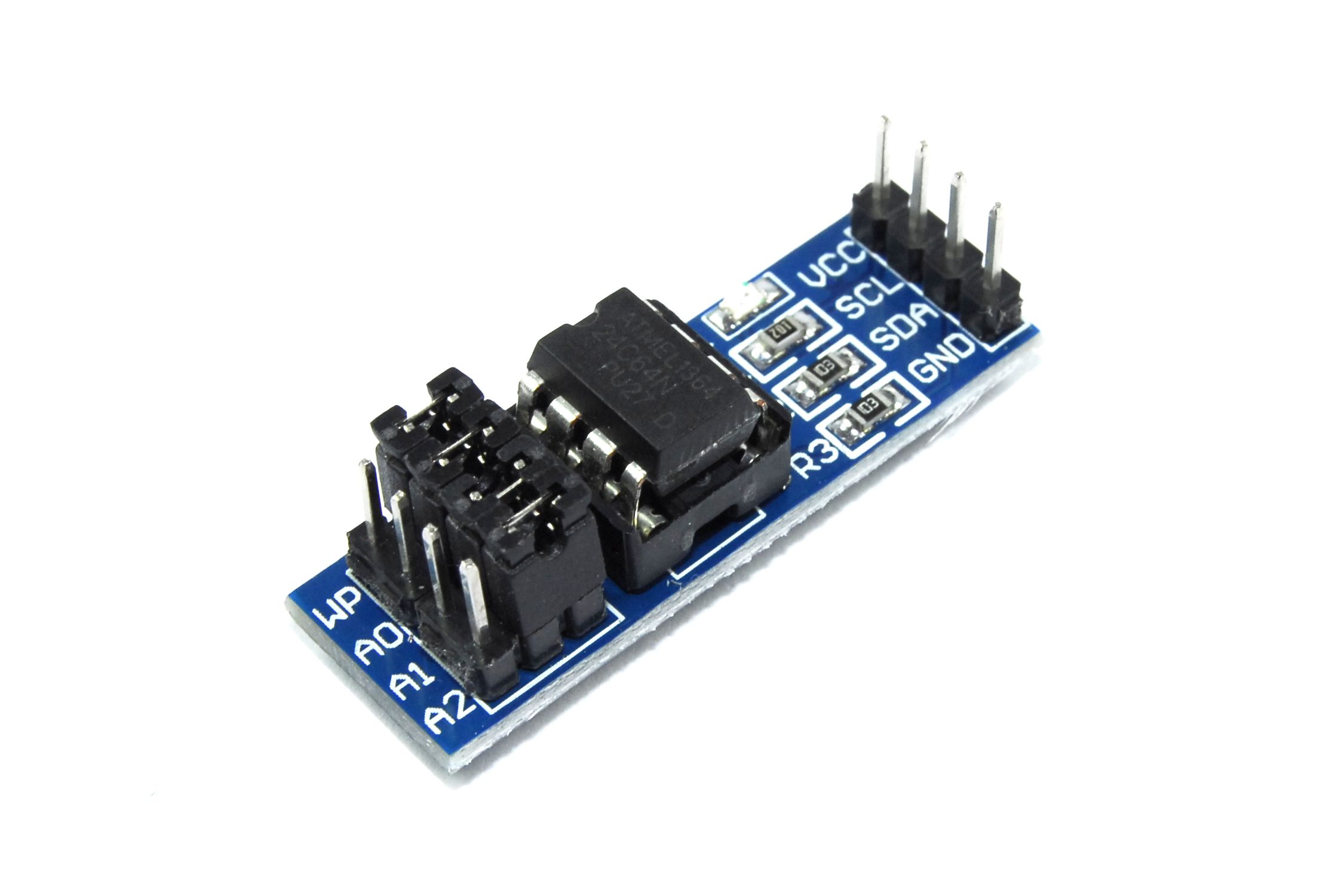 O Módulo de Memória EEPROM - AT24C02 é um módulo desenvolvido para expandir a memória de projetos em até 32Kb, a interface entre o microcontrolador e o módulo eeprom funciona através da interface I2C.
